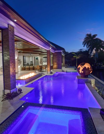 Relax on your lanai under a ceiling of carved cypress. Walk through grand French doors to the pool. Soak in a bathtub that fills with water pouring from the ceiling above. Watch the game in the comfort of a custom L-shaped bar that seats eight, plush lounger, couches and chairs. Share what you enjoy most and we’ll design a residential work of art where all of it is possible.