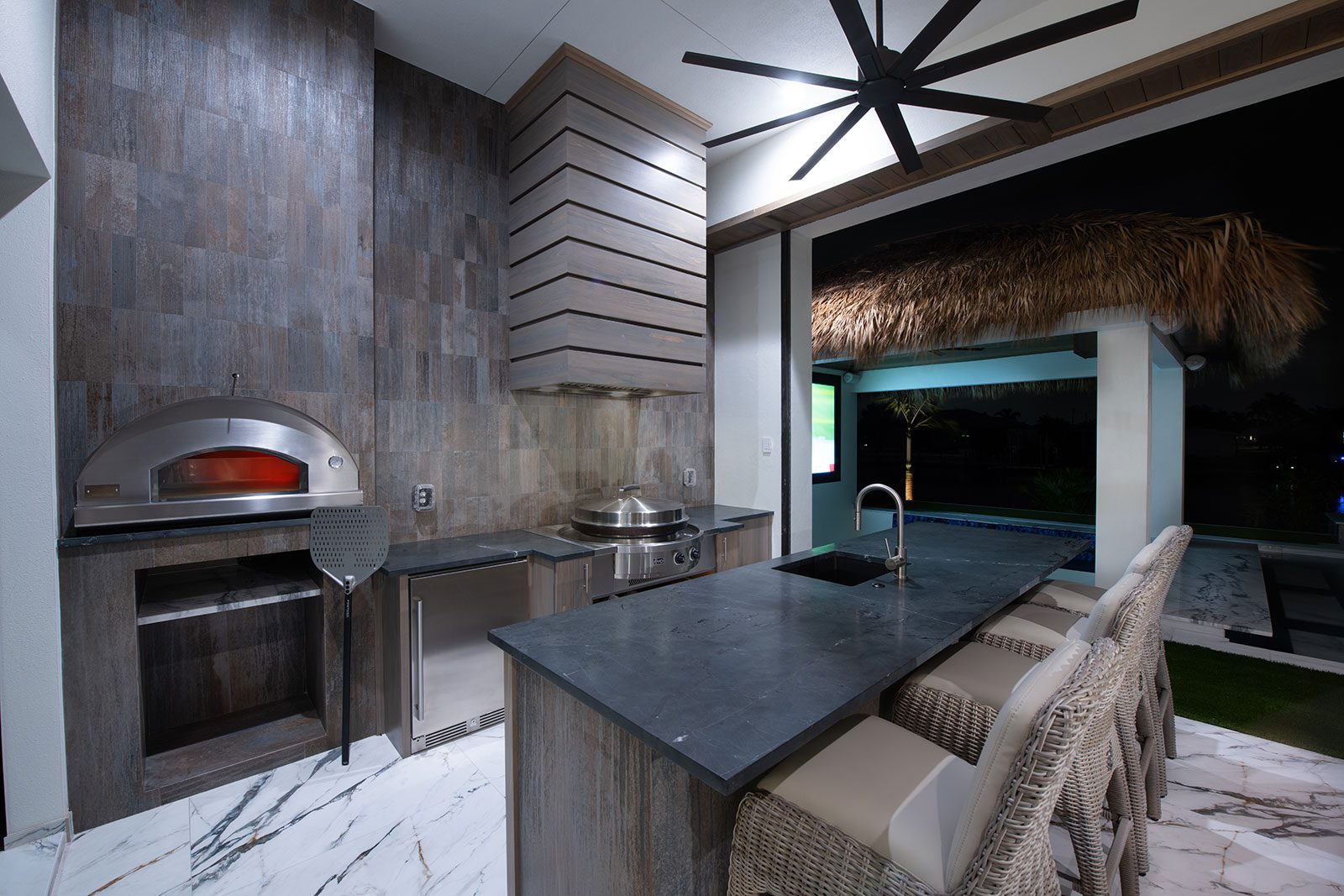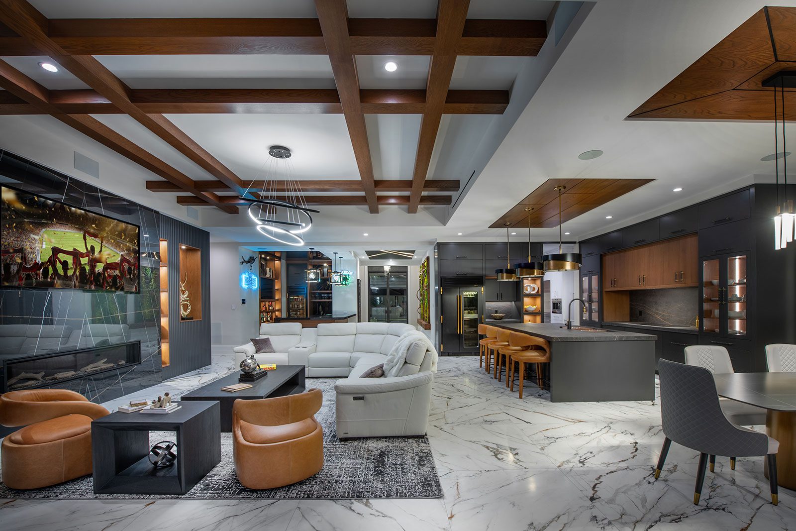The Crown Jewel is a fusion of design, functionality, unrivaled quality and attention to detail. The award winning 3,600 sq. ft. home lives up to its name. As you step inside, prepare to be captivated from all angles. The great room welcomes you with a warmth that only a Koogler Homes can provide. The gas fireplace is a stunning creation combining custom wood and porcelain, creating a harmonious blend of style and comfort. The bar, equipped with TRUE appliances and adorned with custom wooden backlit shelving, the perfect place to have a cocktail before an evening out or a great spot to catch up on your favorite sports team. For those who love to entertain, the fully loaded 180 sq ft butler's pantry awaits. Imagine the ease of preparation and the joy of hosting in a space specifically tailored to meet every one of your needs with style and efficiency. Beyond the 30ft bi-fold glass doors lies a world of possibilities. Pizza nights are a hit with the built-in wood-fired pizza oven and weekends were meant to be enjoyed on this outdoor living area complete with a swim up bar, putting green and sunken firepit equipped with 155-ALR projector screen. All our homes are created with the same narrative of craftsmanship, talent, and visionary design that compliments its owners. If you are looking to create your own work of art, schedule a viewing of this award-winning home that you simply must see for yourself.