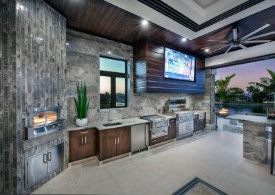 When the owner of a Toledo based chain of pizza parlors wanted someone to create his Florida dream home, we were honored to deliver. The result is our largest Cape Coral home to date - three floors and 12,000 sq. ft. of imaginative living spaces made to order. It’s complete with an indoor/outdoor bar, theater room, and four kitchens. The outdoor kitchen not only has a grill but a pizza oven too. It’s a prime example of how we thoughtfully infuse the owner’s personality into every custom home we create, making it truly a slice of the good life.